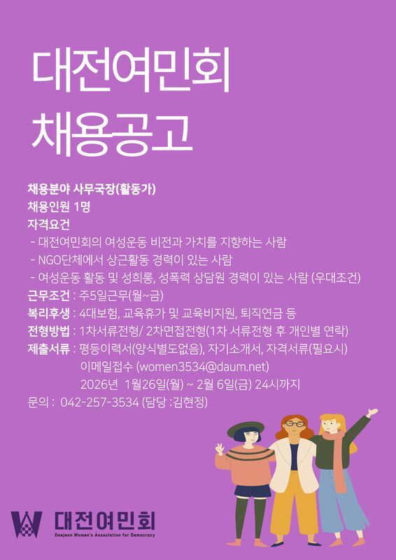 작성자 대전여민회 댓글 0건 조회 7회 작성일 26-01-23 14:53본문